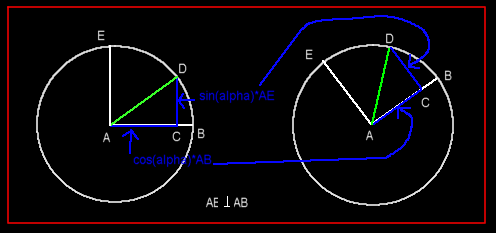 AD = cos(alpha)*AB+sin(alpha)*AE.